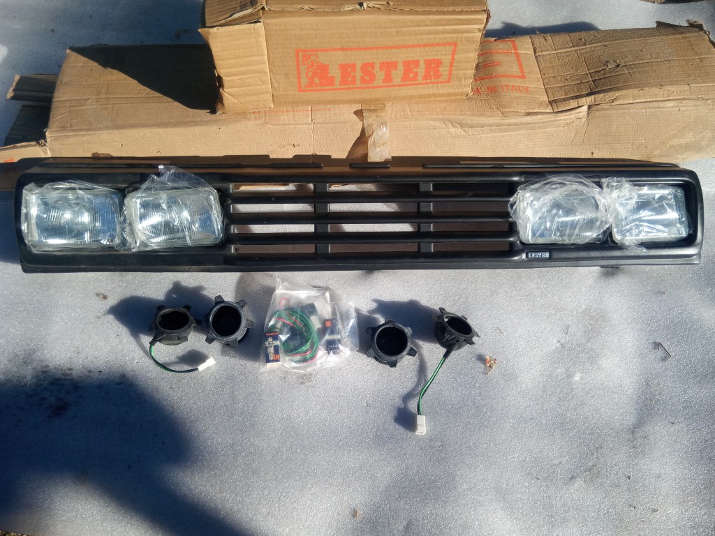 Kit completo della Lester per VW Golf dal 1984 in poi, il kit comprende mascherina, fari, attacchi vari e lampadine.