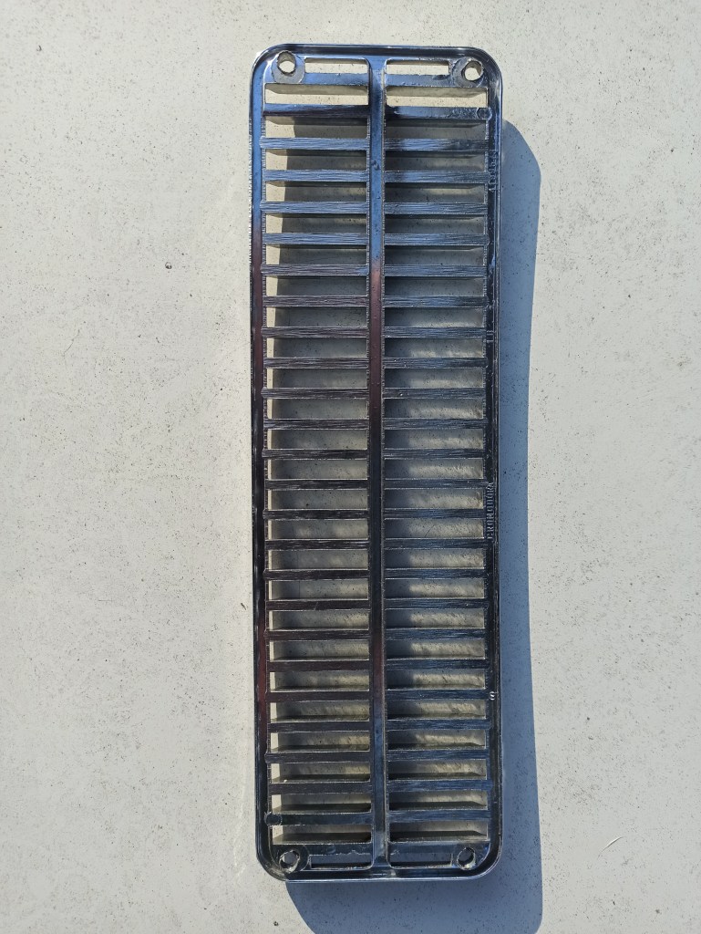 Griglia su cofano Fiat 124 coupè spider, della Cromodora, codice Fiat 4199573, misure 7,5 X 25,5 cm